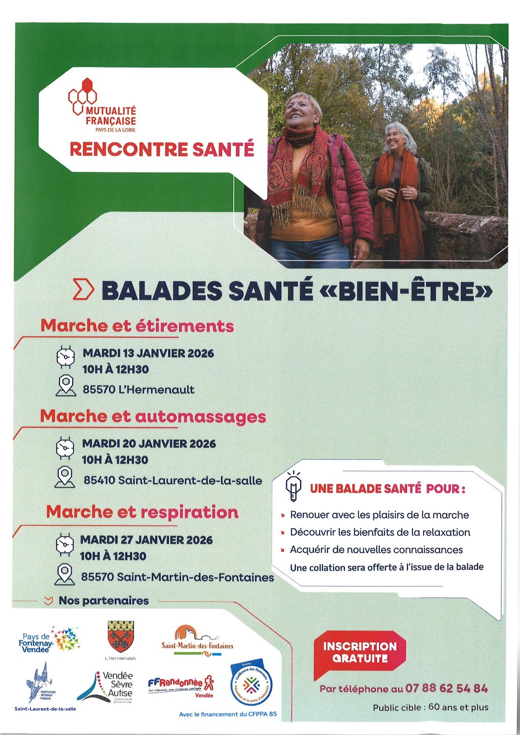 - Gratuit pour les participants et la commune => action financée par la Conférence des financeurs (CNSA – Conseil Départemental de la Vendée)