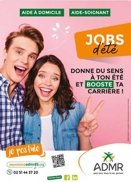 Campagne de recrutement estival, l’ADMR du pays de Fontenay-Vendée (site de L’Hermenault) - des opportunités d’emploi saisonnier, notamment pour des postes d’aide à domicile, d’auxiliaire de vie, ou encore d’aide-soignant.