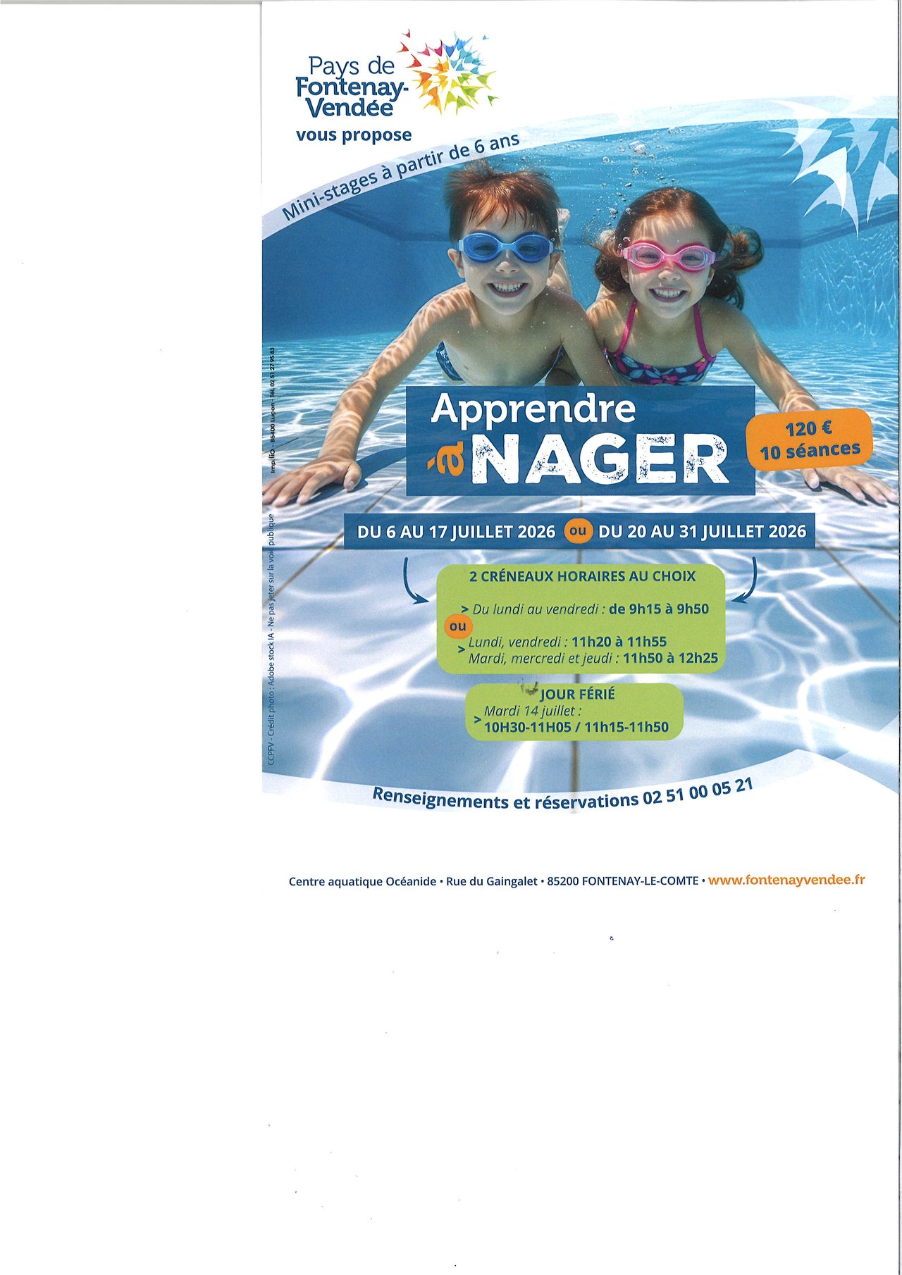 Le Centre aquatique Océanide de Fontenay-le-Comte propose des mini-stages pour les enfants à partir de 6 ans 🌊